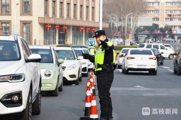 高淳分局民警在车水马龙中指挥着车辆按秩序行驶