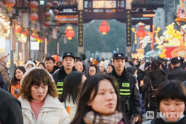 溧水分局民警坚守在无想水镇景区年俗活动安保岗位