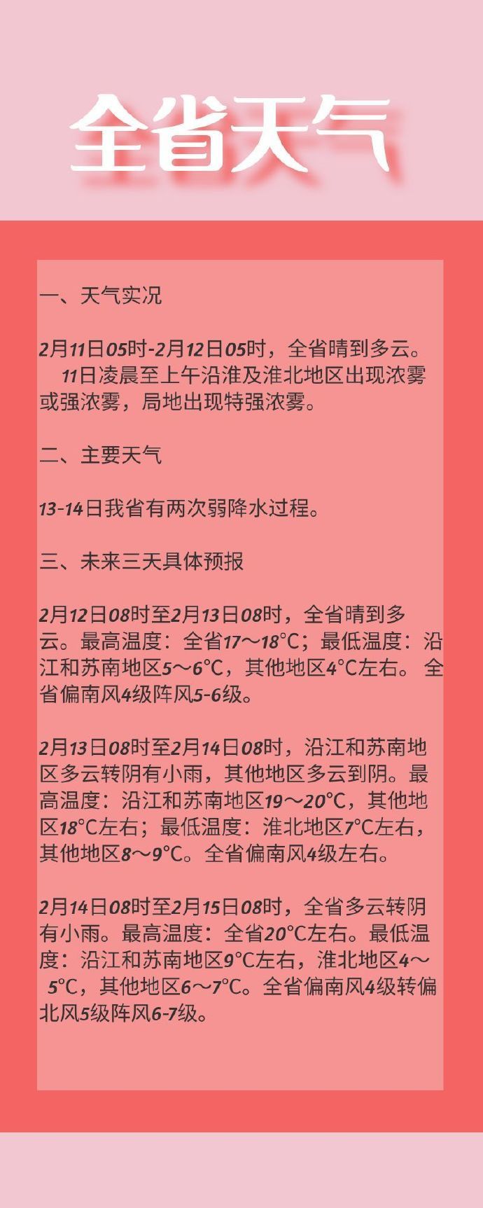 今日全省以多云天气为主,13-14日我省有两次弱降水过程。