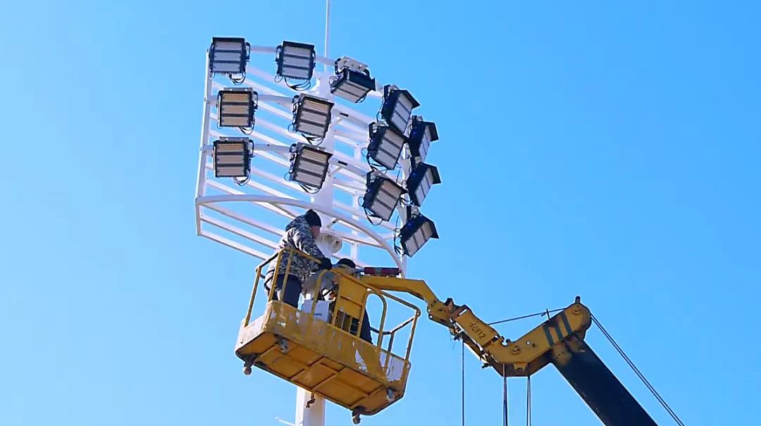 记者在七八堡足球场看到,今年的‘村界杯’更有范儿,球场为标准化的天然草坪,球场西侧搭起了看台,五层钢架木座,可容纳约2000人同时观赛。场内座次清晰、运动文化元素等十分抢眼。还专门为夜场设置了灯光,球场四个角各一组,每组由13只灯头组成,夜场比赛时将灯火通明。