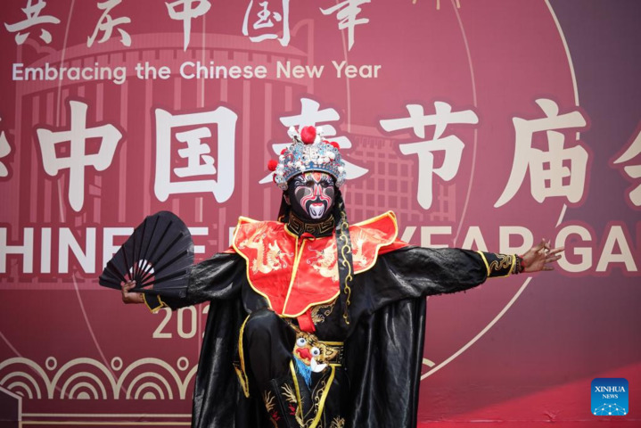 An actor performs face-changing stunt of Sichuan Opera during the Nairobi Chinese New Year Gala in Nairobi, Kenya, on Feb. 10, 2024. (Xinhua/Han Xu)