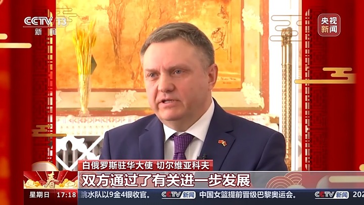 白俄罗斯驻华大使 切尔维亚科夫:去年,白俄罗斯总统亚历山大·格里戈里耶维奇·卢卡申科和中国国家主席习近平举行了两次会晤。双方通过了有关进一步发展两国全天候全面战略伙伴关系的联合声明。这是一种非常高水平的合作关系,给我们带来了新的任务和目标。例如,过渡到新的合作模式。在更大程度上,我们将不仅仅进行单纯的贸易合作,还将创建合资企业,拓展更多的投资合作形式。2023年是标志性的一年,这一年我们巩固了友谊和“铁哥们”般的情谊。