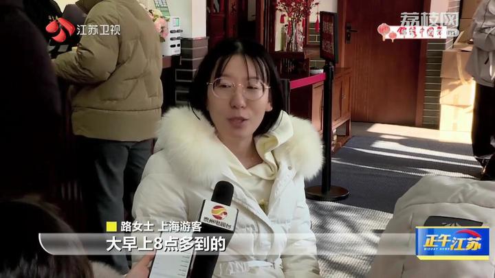 春节假期里,极具特色的泰州早茶也是一桌难求。一大早,这家老字号早茶店门口就排起了长队,当地非遗技艺传承人正在展示跳面制作的技艺。游客路女士和家人一早从上海赶过来,排队半个多小时才吃上了心心念念的泰州早茶。