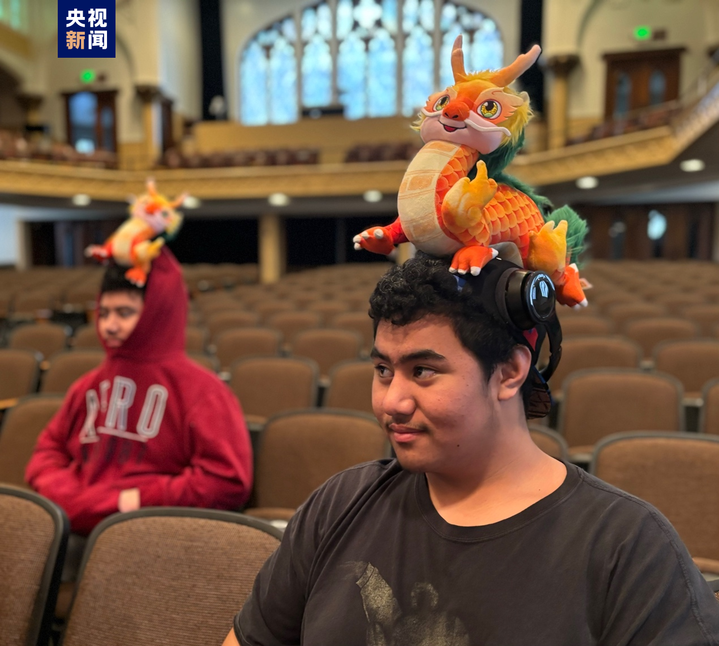 △林肯中学学生非常喜欢总台春晚吉祥物“龙辰辰”