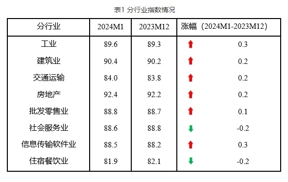 中国中小企业协会今天(14日)发布,1月中国中小企业发展指数为89.2,比上个月上升0.2点,高于2023年同期。各分项指数和分行业指数也是涨多跌少。