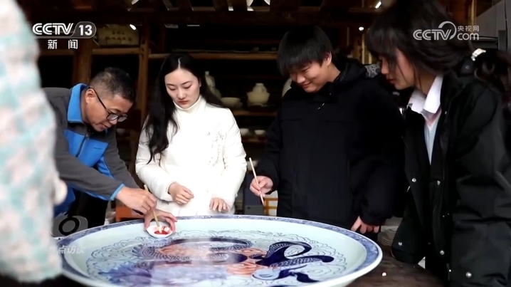 春节将近,景德镇青花瓷画坯技艺非遗传承人孙立新和徒弟们正在制作迎接新年的龙盘,要在这个直径1米的瓷盘上用龙的造型呈现出福字。