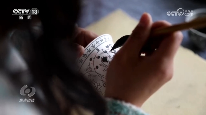 24岁的杨紫萱是孙立新的一位徒弟,去年6月,她开始跟孙立新学习陶瓷绘画技艺。