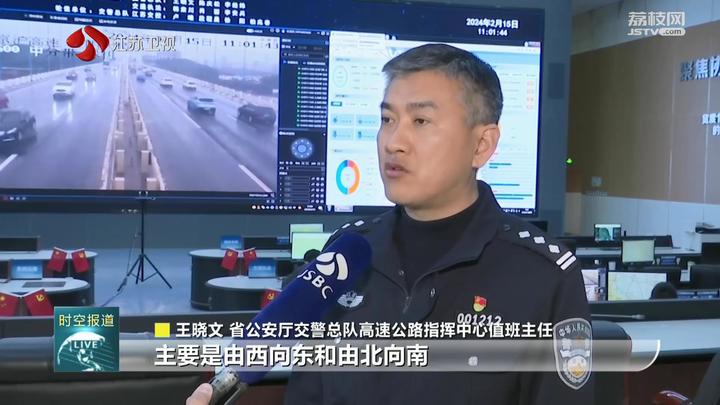 江苏省公安厅交警总队高速公路指挥中心值班主任王晓文说:“总体高速公路车流还是处于高位运行,现在车流方向主要是由西向东和由北向南。有部分节点路段是车多缓行,主要是集中在新扬高速、京沪高速、沈海高速以及江阴大桥、苏通大桥。”