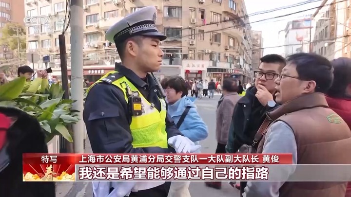 上海市公安局黄浦分局交警支队一大队副大队长 黄俊:我觉得警察其实不是一份职业,我觉得它始终是一份事业。我还是希望能够通过自己的指路、通过和老百姓的交流,最终能够拉近民警和老百姓的距离。