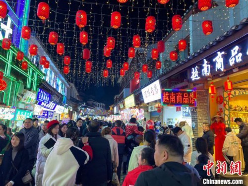 春节前四天,广西各大商圈客流较节前大幅攀升,商文旅融合促消费活动成为消费热点。在南宁市,当地各类景区开展特色活动,吸引大量民众携家带口出行游玩,青秀山、方特东盟神画、孔庙等人头攒动。防城港市商圈、步行街、夜市客流也大幅攀升。