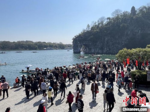 图为2月11日,桂林城徽象鼻山游人如织。涂丽莎 摄