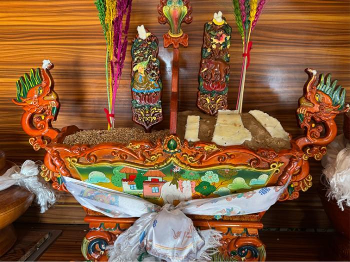 分别盛入炒麦粒和糌粑,