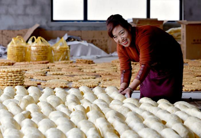 图为藏族阿佳在打包“卡塞” 中新社 记者 贡嘎来松摄