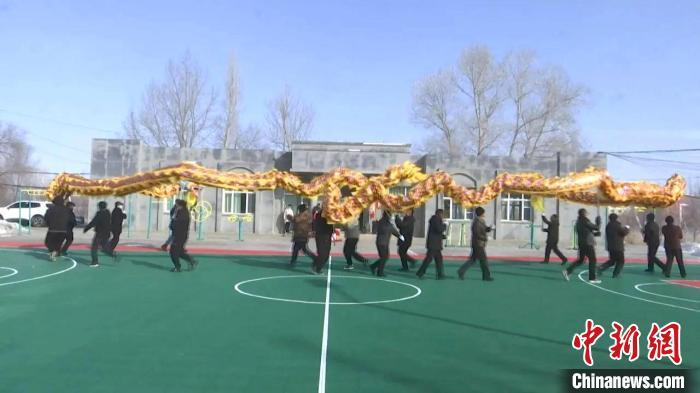 中新网乌鲁木齐2月17日电 连日来,新疆木垒县各乡镇锣鼓喧天,热闹非凡,群众排练春节社火,真正把农村文化活跃起来,村民在春节的氛围里沉浸式感受浓浓的年味。
