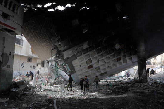 2月12日,人们在加沙地带南部城市拉法查看建筑残骸。新华社发(里泽克·阿卜杜勒贾瓦德摄)