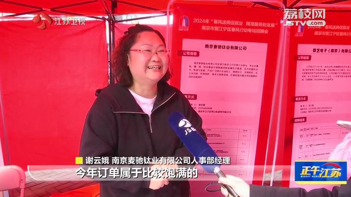 南京麦驰钛业有限公司人事部经理谢云娥说:“今年订单属于比较饱满的。我们今年火力全开,要把人员全部安排到位。技术岗位会在20至30人,还有大批量的工人学徒岗位。 ”