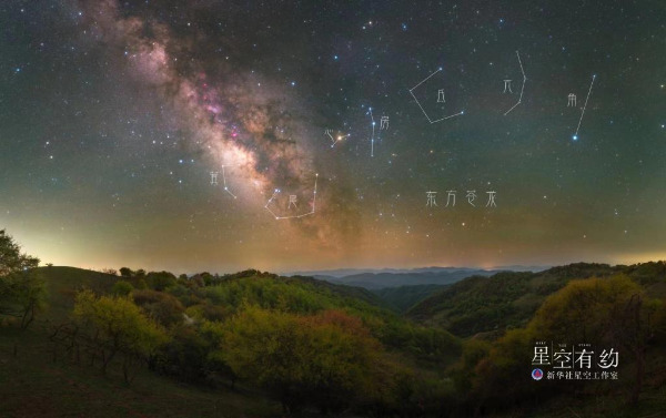 “这条青龙每年冬季会蜷缩在东方地平线以下。古人观察发现,农历二月二,天黑下来时,龙角星就从东方地平线上升起来,犹如‘龙抬头’,接着,‘龙身’也会缓缓升起,这样,一条巨龙就在春天从东方腾空而起。不过,由于岁差的缘故,今人在二月二看见‘龙抬头’的时候,得到21时左右了。要想和古人一样在天刚黑后就看见‘龙抬头’,需要等到清明期间才行。”修立鹏说。
