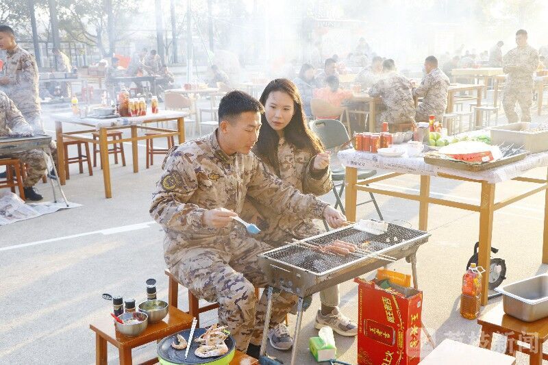 走进武警机动第二总队某支队,贴春联,挂灯笼......随处可见中国红,军营洋溢在欢乐喜庆的节日氛围之中。春节联欢晚会上,官兵们舞起彩带龙,身姿矫健,翻腾起舞威武霸气。烧烤美食节上,官兵和家属边吃边聊,回味过去、畅谈未来。