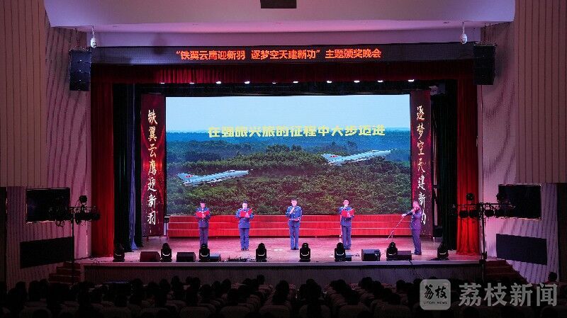 “军功章里,有我的一半,有你的一半。”军人荣誉的背后,离不开军嫂辛勤默默付出。在主题颁奖晚会上,军属为获奖官兵颁发奖章和证书。