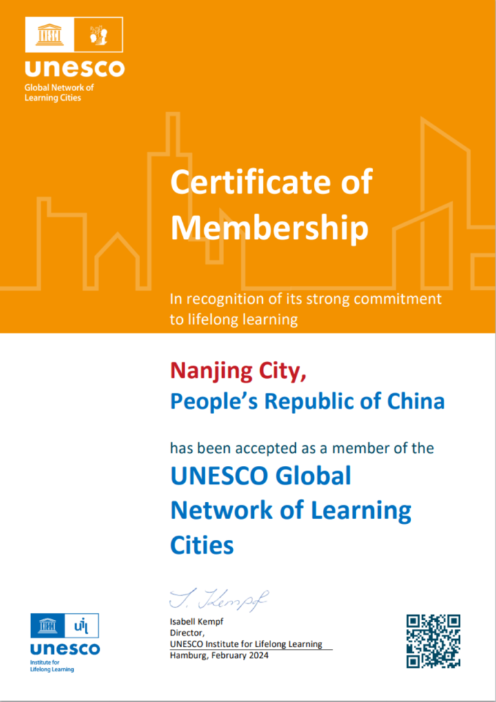 全球学习型城市网络由联合国教科文组织终身学习研究所(UIL)创建,致力于搭建一个全球网络学习平台,支持和推动网络成员城市间开展政策对话、经验交流与实践分享,助力城市终身学习能力建设与社区可持续发展。此次成功加入“全球学习型城市网络”,南京将进一步深挖历史文化和科教资源优势,对接国际标准、借鉴先进经验,构建城市文学和教育双矩阵。