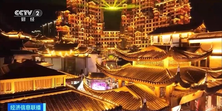 白天看山,晚上观夜色。夜晚的张家界七十二奇楼更是游客爆棚。造型独特的土家吊脚楼,在流光溢彩、绚丽梦幻灯光的映衬下亮眼夺目,吸引近两万名游客前来观光打卡。