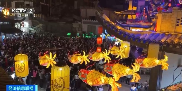 游人们在景区内赏花灯、看民俗表演、品特色小吃美食,感受浓浓的土家年味儿。有的游客换上了土家服饰,与奇楼美景合影,拍下一组组土家族时尚大片。
