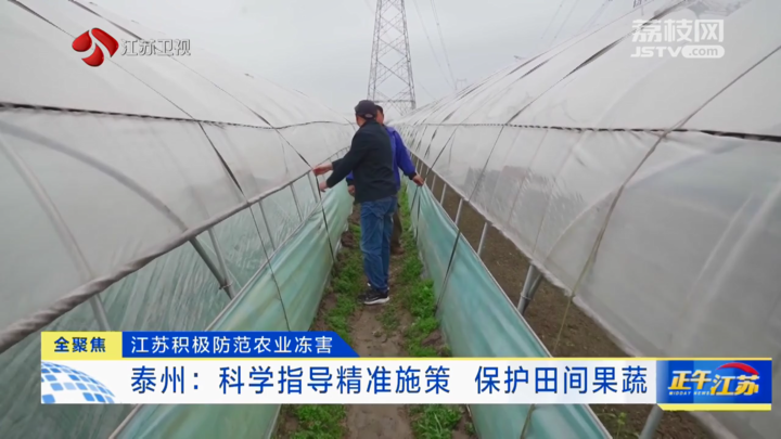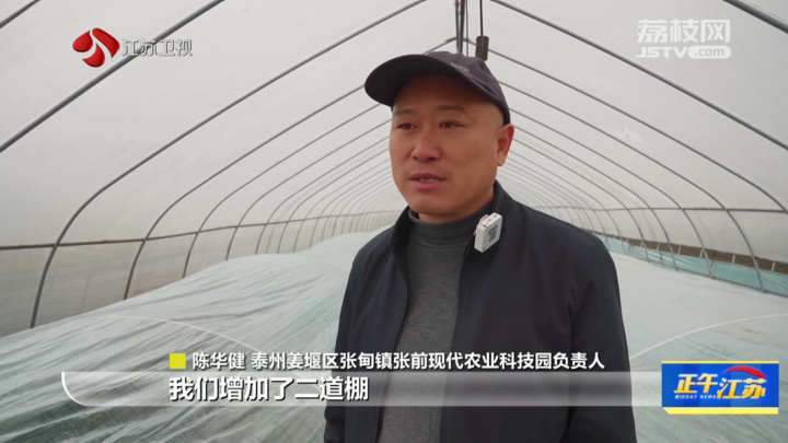 泰州姜堰区张甸镇张前现代农业科技园负责人陈华健说:“我们增加了二道棚,上上去以后正常能增加2到3度,基本就能确保下面的植物安全地度过这次寒流。”