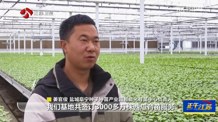 盐城阜宁种子种苗产业园智能化育苗中心负责人姜官俊说:“整个冬春育苗季,我们基地共签订3000多万株西瓜育苗服务,目前正陆续出栏发往周边县市各地,这些种苗能够满足近5万亩的春耕春播需求。”
