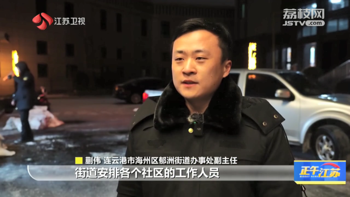 连云港市海州区郁洲街道办事处副主任蒯伟说:“今天5点钟开始,街道安排各个社区的工作人员以及街道的机关工作人员,全部下沉到一线点位上,开展扫雪除冰工作。”