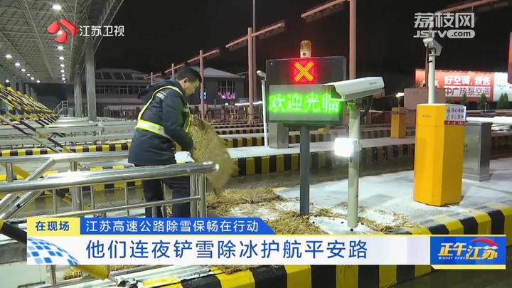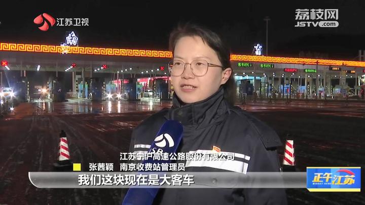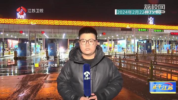 江苏台记者朱瑞:“我现在所在的位置是沪宁高速南京收费站。目前,室外气温已经来到了-1℃。受到雨雪天气的影响,今天下午收费站短暂关闭,目前已恢复正常通行。经过收费站工作人员的及时清扫,可以看到路面上现在没有明显积雪。今天晚上,他们将彻夜坚守,以随时应对天气的变化。”