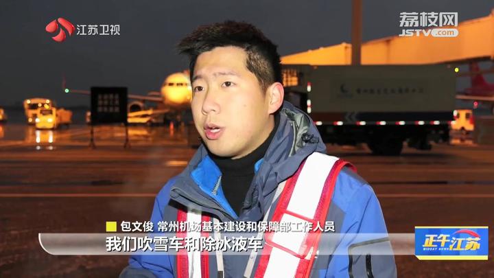 常州机场基本建设和保障部工作人员包文俊说:“晚上停航之后,我们吹雪车和除冰液车还会上跑道去全部跑一遍,保障第二天早上的航班不会受到影响。”