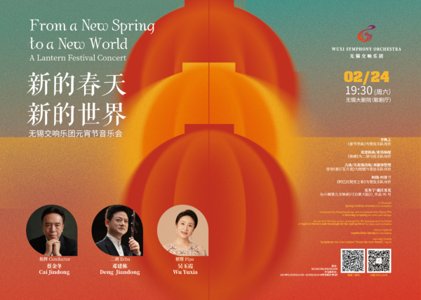 《新的春天 新的世界》无锡交响乐团元宵节音乐会,将以中国传统音乐为线索,古典韵味的琵琶、具有诉说感的二胡,搭配气势磅礴的交响乐团,目及为画,耳遇入心,带无锡乐迷们感受一场穿越中西的视听盛宴。
