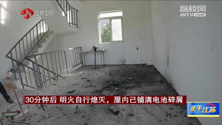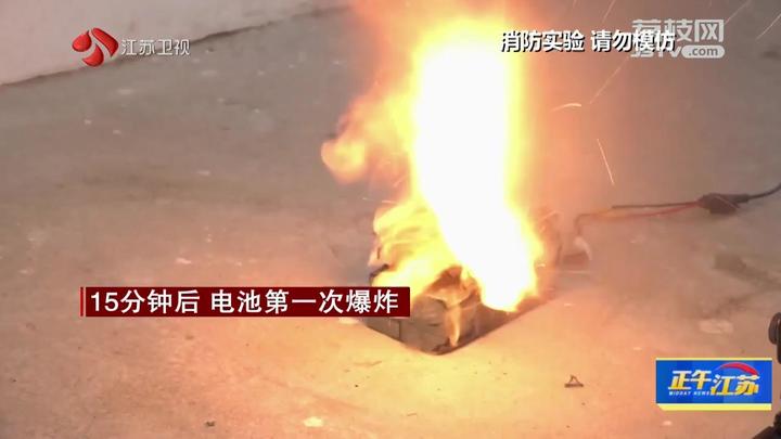 10分钟后,电池第一次爆炸。13分钟后,首块电池被崩离电池组。17分钟后,电池组火势增大,电池组彻底解体。30分钟后,明火自行熄灭,屋内已铺满电池碎屑。