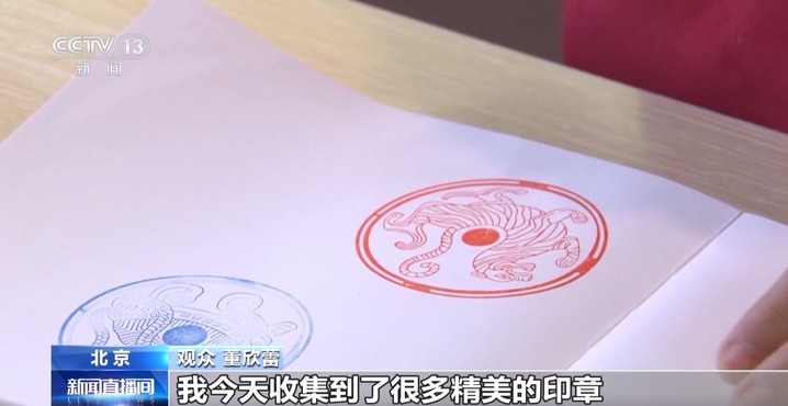 观众 董欣蕾:我今天收集到了很多精美的印章,还学习到了很多历史,比如,它在什么时候发掘的,在哪个时代制造出来的。彩绘龙纹陶盘是我最喜欢的一个,因为它就是最初始的龙雏形,原来是长这个样子,我第一次学到了。