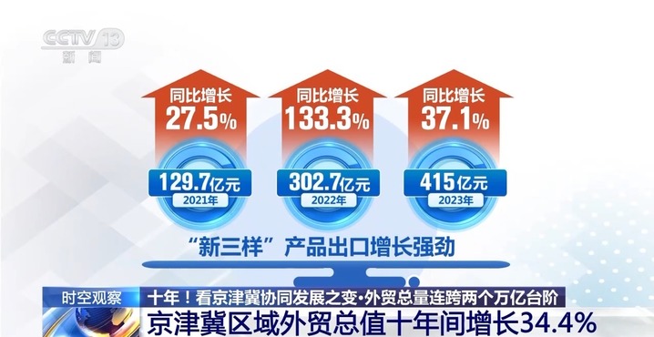 今天,我们通过外贸和交通领域的发展,来看看京津冀协同发展十年之变。外贸总量连跨两个万亿台阶如何实现?京津冀交通一体化十年提速几何?十年探索出哪些协同发展新路径?