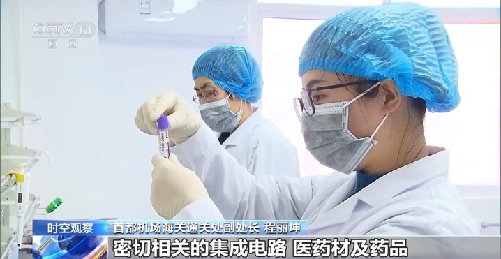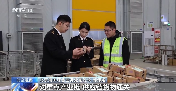 首都机场海关通关处副处长 程丽坤:十年前,进出关的货物中大宗商品、原材料等比较多,现在与构建现代化产业体系密切相关的集成电路、医药材及药品、航空器零配件等货物的数量正逐渐提高。