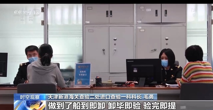 天津新港海关查验二处进口查验一科科长 毛勇:我们指导企业运用“先放后检”等便利化措施,做到了船到即卸、卸毕即验、验完即提,帮企业减少时间成本和资金成本。