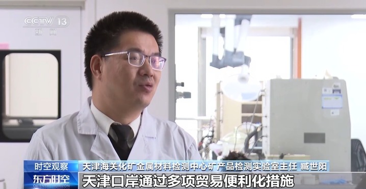 天津海关化矿金属材料检测中心矿产品检测实验室主任 臧世阳:天津口岸通过多项贸易便利化措施,提升了锰矿、铬矿进口的通关效率,这就为保障我国的能源资源、重要产业链安全发挥了重要的作用。