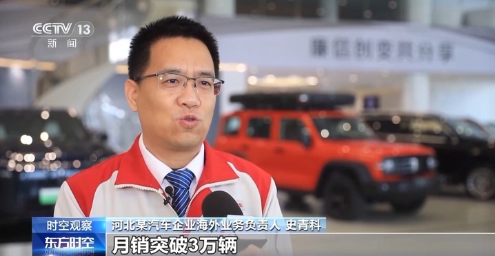 河北某汽车企业海外业务负责人 史青科:自2023年8月起,我们连续5个月,月销突破3万辆,创造年销31.6万辆,同比增长82%;新能源(汽车)销售5.7万辆,占比近20%,同比增长431%。