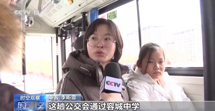 乘客 李昕霏:这趟公交会通过容城中学,连接了学校和家,很节约时间,价钱也合理,0.8元。