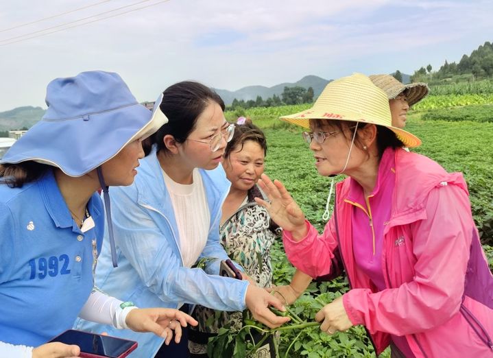 贵州省农业农村厅二级研究员夏忠敏(右)和她带领的“揭榜挂帅”团队在遵义市播州区指导辣椒生产(资料照片)。新华社发