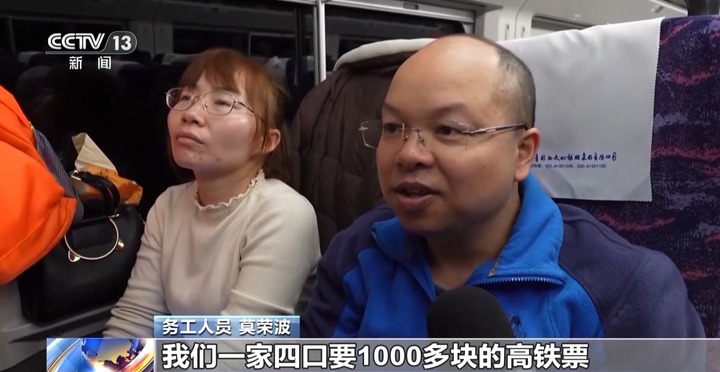 务工人员 莫荣波:我们一家四口要1000多块的高铁票,有了这个(专列),我就节省开支了。
