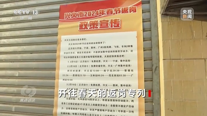 贵州黔西南州兴义火车站客运值班员 杨云霞:“因为春节期间各条线路开专列比较繁忙,所以要提前申请、报备,然后审批,审批完毕了,整个流程走完了,才能对人社部门进行答复。”