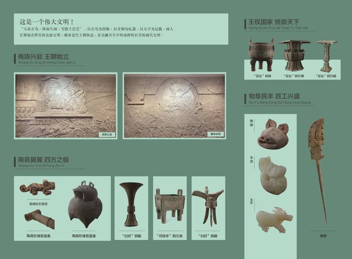 基本陈列将长期对公众开放,展示几代殷墟考古人接力前行、不断求索,取得了一次又一次重要发掘成果,对夏商都邑的深入研究,为不同时期不同区域的商文化研究提供了对比标尺。众多首次亮相的各类珍贵文物再现了商朝繁盛的城市文明,完善的礼乐文明、发达的青铜文明、灿烂的文字文明以及高超的科技文明。全面系统地展现了我国商代晚期都城的风貌,让全世界看到一个中华文明早期发展阶段最为辉煌的时代——大邑商。