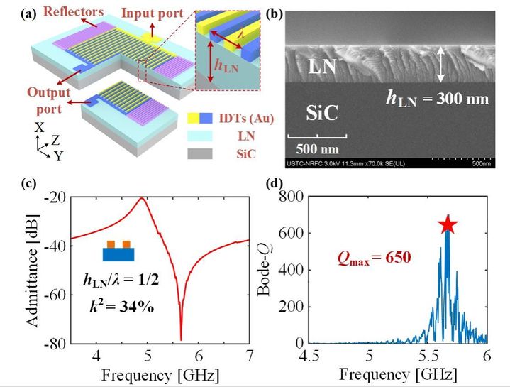 研究人员在一种特定衬底上设计并制备了一种高频、高机电耦合系数、高Q值的耦合剪切模态声表面波(X-SAW)谐振器。通过选择合适的欧拉角和设计铌酸锂薄膜厚度与叉指电极波长的比值,使得水平和厚度方向的电场同时激励两个剪切压电系数,并使它们共同作用到一个机械振动模态中,从而获得了机电耦合系数前所未有的大幅提升。