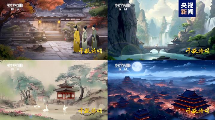 作为总台旗舰频道,综合频道(CCTV-1)一直是总台内容创新、科技创新的排头兵和示范区。频道牵头策划的《千秋诗颂》是国内首部以我国自主AIGC技术支撑制作的系列动画片。节目综合运用可控图像生成、人物动态生成、文生视频等最新技术成果,支持了从美术设计到动效生成,再到后期成片的各个环节,实现了“有声言诗和无声画意”的有机融合,是技术和艺术结合的典范。受众可全方位沉浸在古诗词悠远的意境中,感受独属于中国诗词的浪漫。
