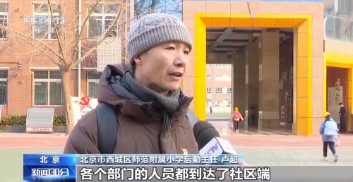 北京市西城区师范附属小学后勤主任 卢超:今天是(通学车运营)第一天,各个部门人员都到达了社区端,现场疏导交通,和我们预想的基本一致。
