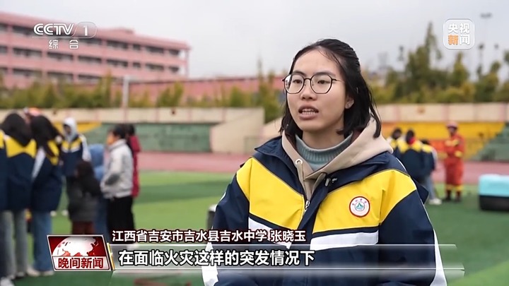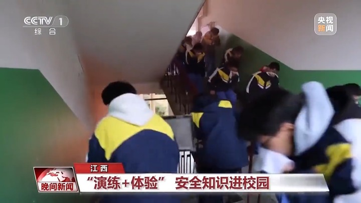 江西吉安吉水中学,则给学生们上了一节安全体验课。随着警铃声响起,老师带着学生用湿毛巾捂住口鼻,沿着疏散路线有序离开教室。疏散演练结束后,同学们则在消防员带领下进行灭火器实操演练,学习消防知识。