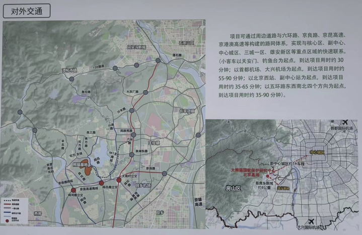 记者查阅地图发现,青龙湖镇交通比较便利。大熊猫国家保护研究中心北京基地所在地周边,目前已有六环路、京昆高速两条高速路,顺着已完成延伸的京良路,还可以联通五环路、京港澳高速,不堵车的情况下,从西三环驾车前往基地仅需半个多小时。已开工建设的北京地铁1号线支线青龙湖东站,距离基地大约6公里。