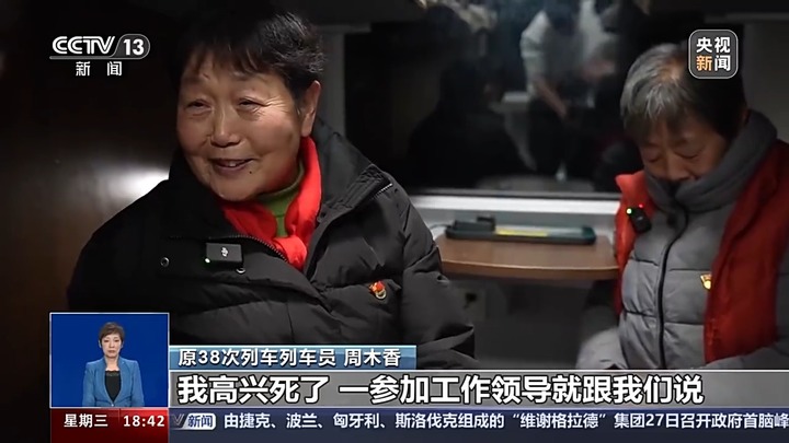 原38次列车列车员 周木香:这么多年,我和这趟车建立了非常深的感情,这趟列车不愧为红旗列车,从20世纪到这个世纪红旗列车没有褪色。